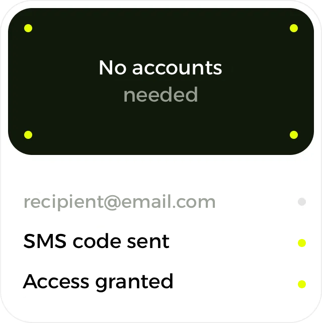 Recipients authenticate with SMS, voice or password. No account required. No portal login.