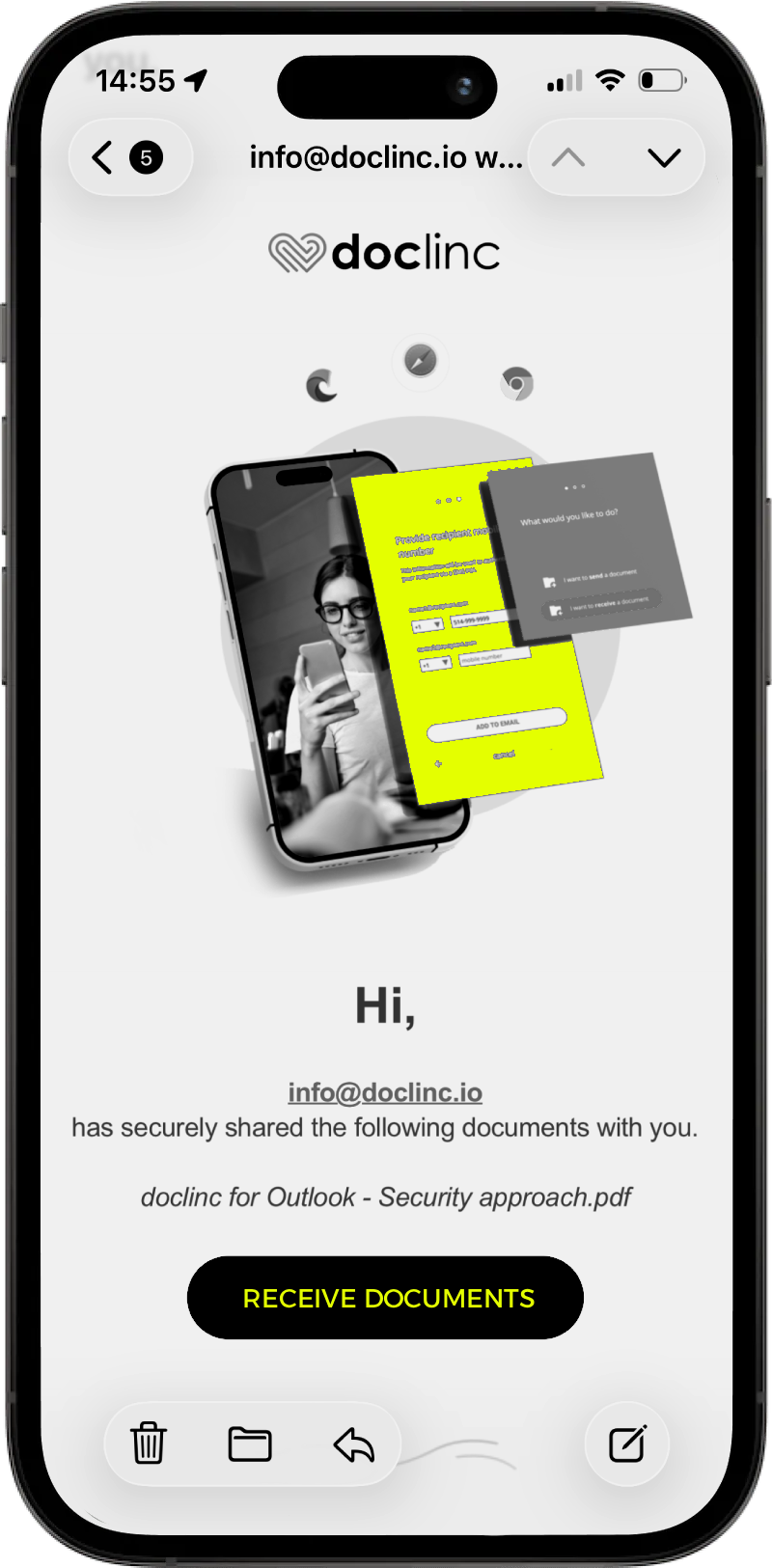 Yes. doclinc is a certified Microsoft add-in available for Outlook on Windows, Mac, and Outlook Web. Your team can share or request documents securely without leaving Outlook.